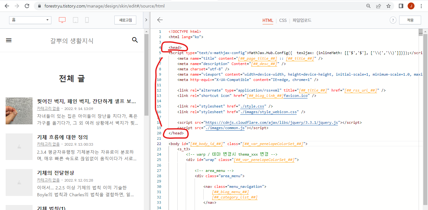 4. 블로그에 적용 및 미리보기 확인