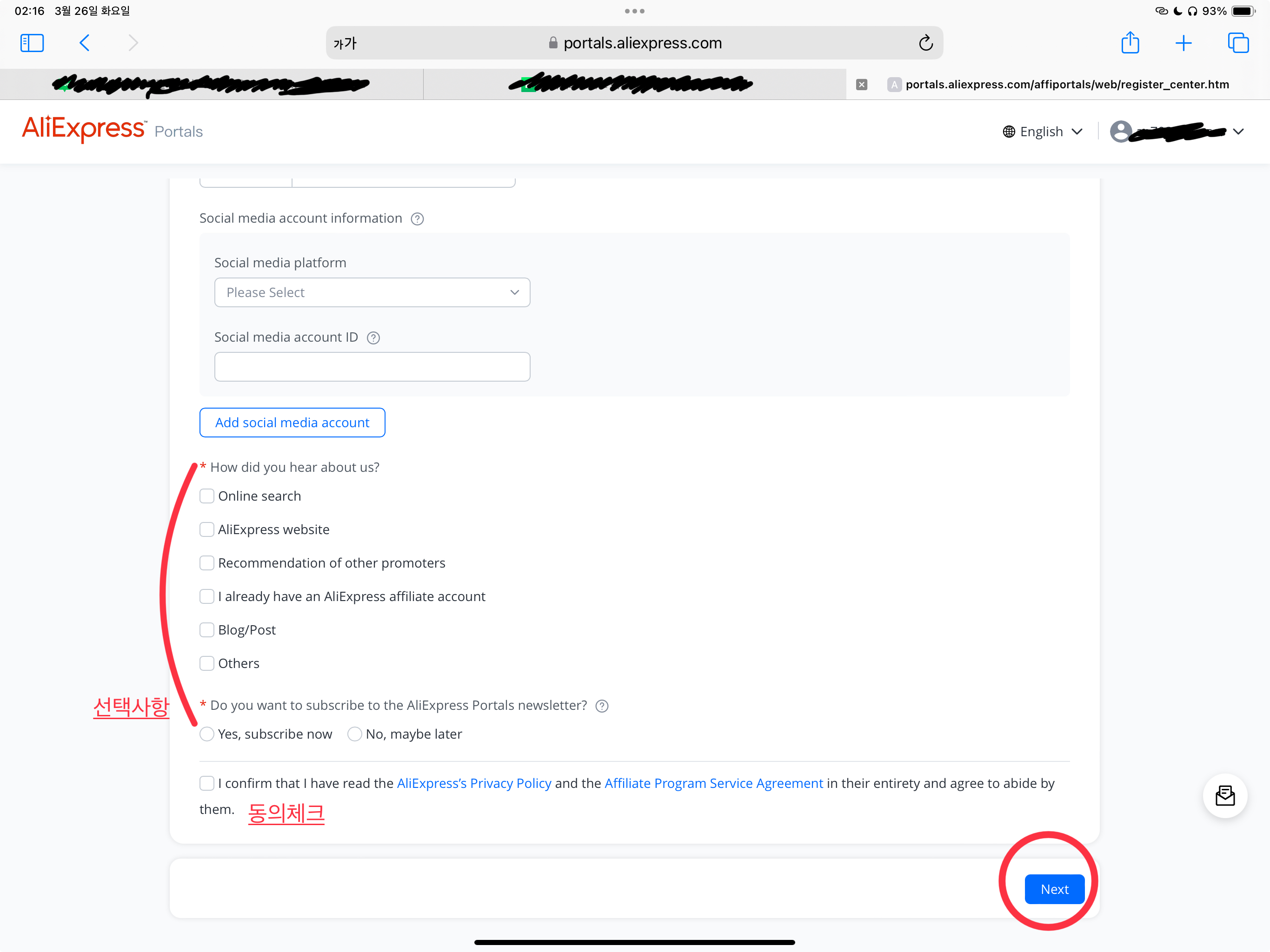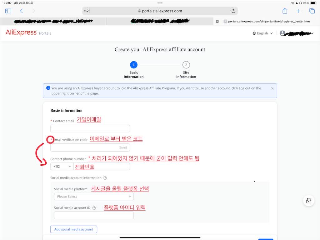 1. 알리어필리에이트 사이트에 접속합니다.