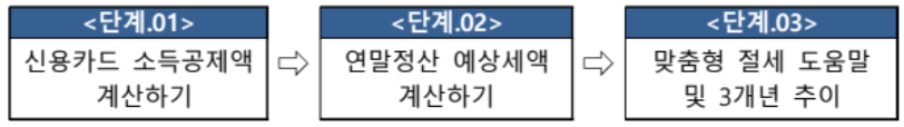 ⭕ 최근 3년간 연말정산 내용을 보여주고, <단계.02>에서 입력한 결과에따라 근로소득자에 맞는 항목별 절세 도움말 및 유의사항 안내