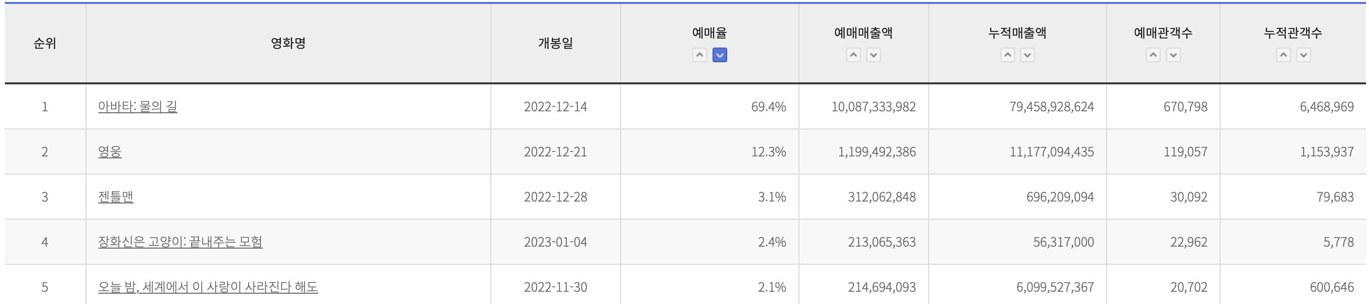 코로나가 끝나가는듯 하지만 날씨가 추운 영향을 타서인지 다시 기승을 부리고 있습니다. 하지만 예전과 다르게 사람들은 평소와 다를바 없이 생활 하고 있습니다. 크리스마스가 지나고 신년을 앞두면서 영화관을 찾는 관람객들이 점점 늘어나고 있습니다. 우리나라 영화 실시간 예매율 1위부터 3위까지 알아보도록 하겠습니다.